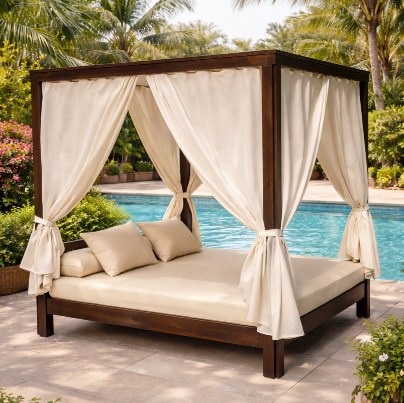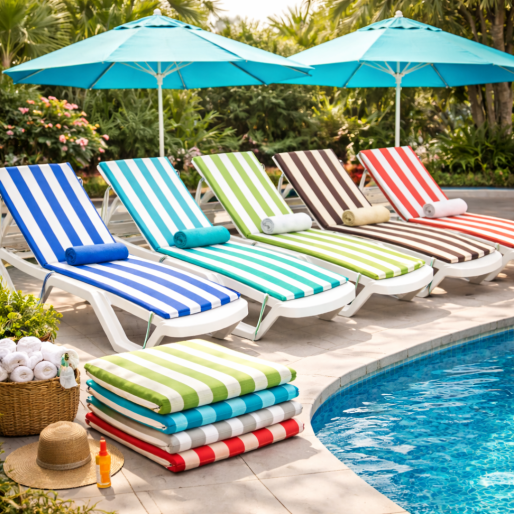 Матраци з водонепроникного нейлона Оксфорд 600D (щільний, з крупним плетінням ниток та різноманітною кольоровою гаммою) гарно виглядають на шезлонгах з ротангу та дерева
